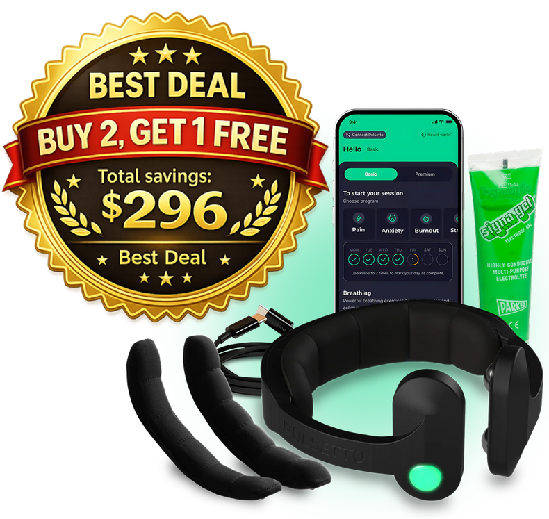 This exclusive online deal includes Pulsetto for only $296 with free shipping directly to your door. Every order is backed by a 30-day money-back guarantee and a 2-year warranty for complete peace of mind. Choose from two bundle options: Buy 1 Get 1 at 50% Off or Buy 2 Get 1 Free and save $296 today.